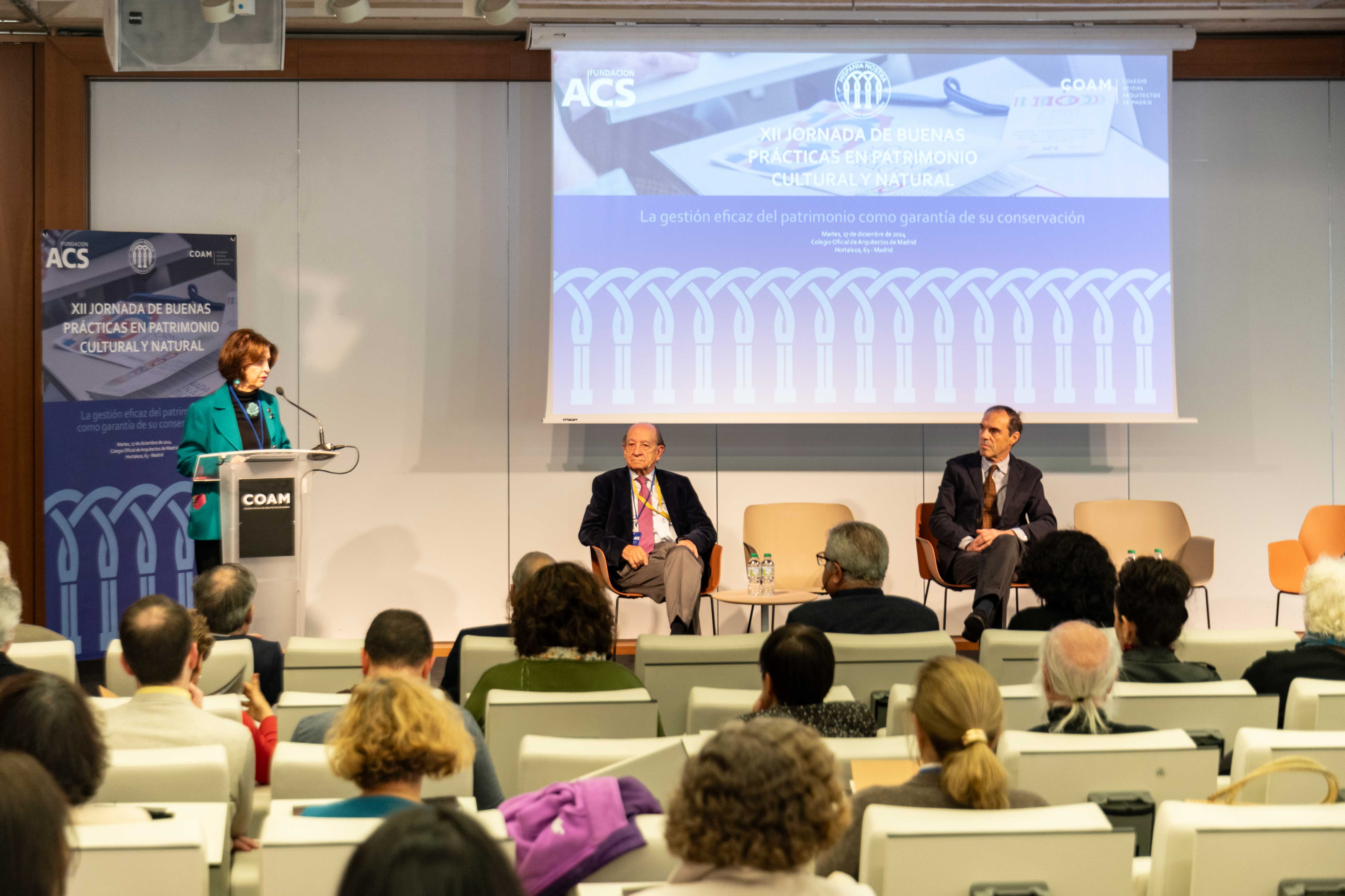 El 17 de diciembre de 2024 ha tenido lugar en el Colegio Oficial de Arquitectos de Madrid la XII Jornada de BBPP en Patrimonio Cultural y Natural organizado por Hispania Nostra y el apoyo de la Fundación ACS. En esta edición el debate y exposición de casos ha girado en torno a la Gestión eficaz del patrimonio como garantía de su conservación, desde la administración, el sector privado, la sociedad civil o la universidad.